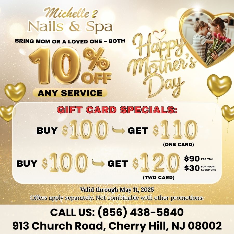 Michelle 2 Nails And Spa is proud to be one of the best nail salons in the area, located conveniently in Cherry Hill, New Jersey 08002. Our friendly and talented staff will help you achieve your ideal look.